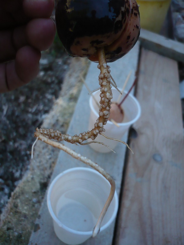 difatti l'ho interrato proprio quel giorno il mio avocado, la foto è di un anno fa. comunque sta riprendendosi, ha reiniziato a germogliare, yuppi! comunque i cotiledoni mi stavano andando a marcio e per paura che trasmettessero marciscenze alla pianta con una leggera forzatura mi sono venuti via e li ho buttati.