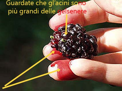 Può essere che nessuno , in un sito di agraria sappia riconoscere a quale pianta appartiene questa gelsa nera, che tinge le mani quando si raccoglie???????????????
