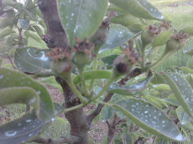 quest'anno, non so perchè ho deciso di cominciare a dare il rame anche dopo la fioritura, cosa che non ho mai fatto, tranne qualche spruzzatina quando avevo un po' di bolla, ma più verso l'autunno.fatto sta che quest'anno c'ho dato dentro e credo che queste situazioni siano dovute a questo; secondo voi le macchie scure sui frutticini del pero possono essere dovute all'eccesso di rame?e per le foglie del pesco vale la stessa cosa?oppure si tratta di altro.grazie mille.