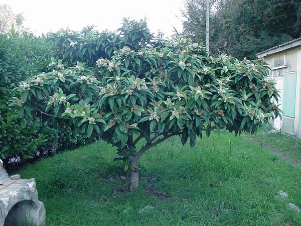 ciao, ritornando alla potatura al momento togli tutti i piccoli rametti che partono da sotto e lascia tutti quelli grandi, in piu qualche rametto all'interno non devi esagerare la potatura piu importante la farai ad agosto, sempre togliendo qualche ramo che si incrocia. poi quando farà i frutti non tagliare la punta ma solo il grappolo. in foto una cima con attaccate le nespole dello scorso anno, dovresti farlo crescere come l'albero in foto. cerca di allargare i rami laterali aiutandoti con delle canne che fisserai nel terreno e legando i rami piegati