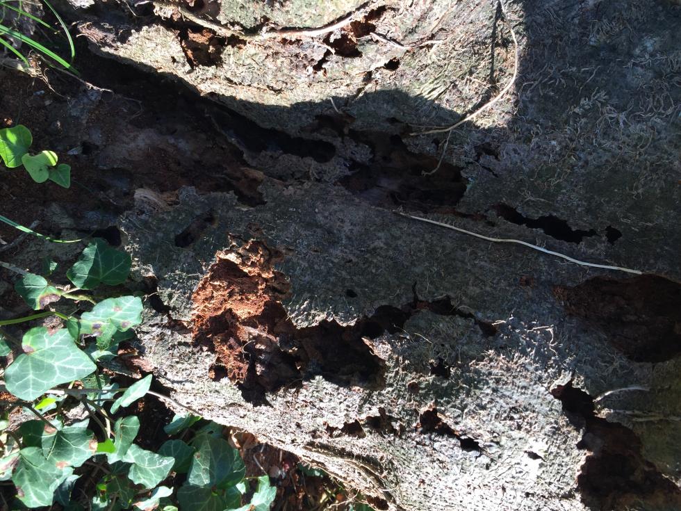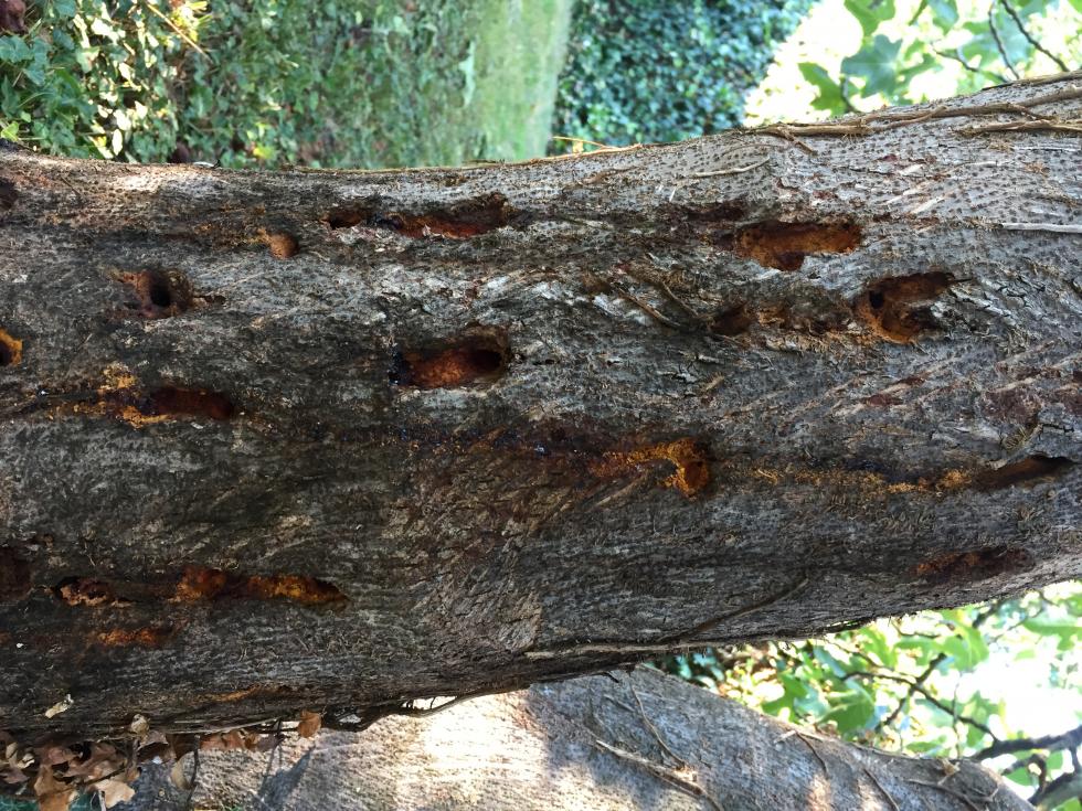 Il più vecchio degli alberi che presenta sulla corteccia vari punti con formiche che entrano ed escono dalla corteccia