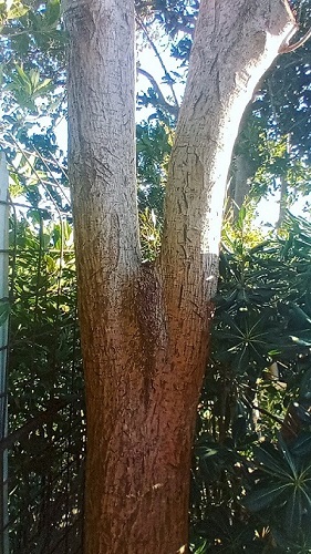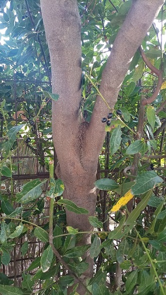 Ciao gentili utenti. Come potete vedere dalle immagini allegate possiedo questi tre alberi con curvatura a V e corrugamento eccezion fatta per il Gelso. Ho letto che a lungo andare c' è il rischio che uno dei due rami si spezzi a causa della corteccia inclusa. Ma non capisco se il Ligustro e l' alloro abbiano la corteccia inclusa.