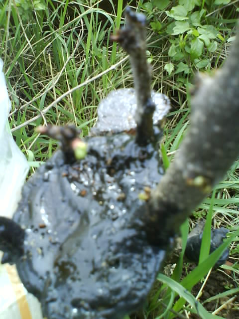 Purtroppo ho parlato troppo presto:  Siamo ormai a maggio e gli innesti di albicocco che inizialmente evevano preso al 50 % si sono quasi tutti seccati entro i due mesi da quando fatti, e non si riesce a capire la ragione (forse il freddo notturno) anche se ho cambiato metodi quest'anno è successo lo stesso fenomeno degli anni precedenti. E' strano perchè quelli della vite attecchiscono. Mi posso però consolare del nuovo alberello che ha fruttato per la prima volta, e della vecchia pianta morente che avvolta nella margotta a 2 metri di altezza ha ripreso ha fruttare nonostante il tronco in basso tutto sventrato: probabilmente nella miscela di terreno e concime NPK messa nel secchio con cui ho avvolto il tronco a 2 metri di altezza sono uscite delle nuove radici e così hanno cacciato frutti sia i rami uscenti dal terreno che quelli sotto il vaso. Ora il dubbio è se tirarla giù il prossimo dicembre o quello successivo.
