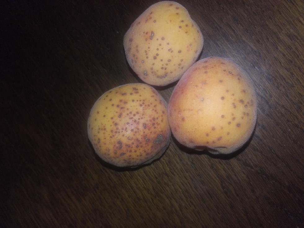 Salve a tutti, il mio albicocco ha prodotto un mucchio di frutti buonissimi. Però ogni albicocca ha una infinità di punti. Così come nella fotografia in allegato. Volevo chiedere se il prossimo anno c'è qualche trattamento che mi conviene eseguire per fare in modo che siano belle nell'aspetto. Grazie mille