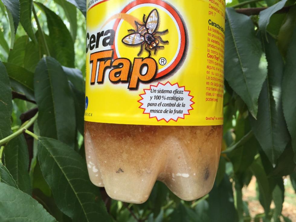 Aggiungo che le trappole con attrattivo alimentare (si tratta di sostanze proteiche relativamente selettive nei confronti della mosca: sviluppano sostanze volatili attrattive per le femmine in cerca di cibo prima dell'ovideposizione) si possono preparare anche artigianalmente utilizzando bottiglie di plastiche e riempendole per un terzo con il prodotto liquido acquistabile a prezzi contenuti. In teoria funzionerebbero anche per la cattura massale (allego una immagine da Spagna ... per evitare rimproveri dai moderatori  ).