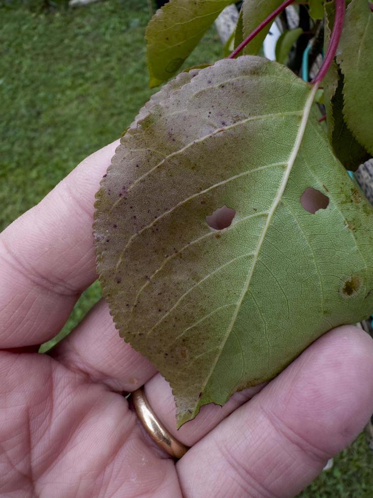 Foglie chiuse, bucherellate, puntini rossi sulla pagina inferiore