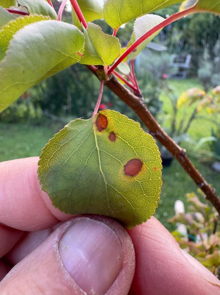 Ho notato che avevi duplicato questo tuo quesito su altro forum e recentemente hai aggiunto un'altra foto con maculature (allego per la comunità): per quel che conosco esse non mi paiono riconducibili a malattie fungine comunemente associate all'albicocco, dunque potrebbero essere anche di natura non parassitaria. Leggo che hai comunque trattato, anche con prodotti per uso professionale ma che non sono registrati per albicocco (rame+metalaxil trova impiego in viticoltura contro la peronospora e in orticoltura sempre contro patogeni dello stesso tipo); francamente mi sembra eccessiva la tua preoccupazione e, se mi permetti, così come in mecidina umana anche per le piante concettualmente non si tratta a caso e/o se non c'è danno significativo.