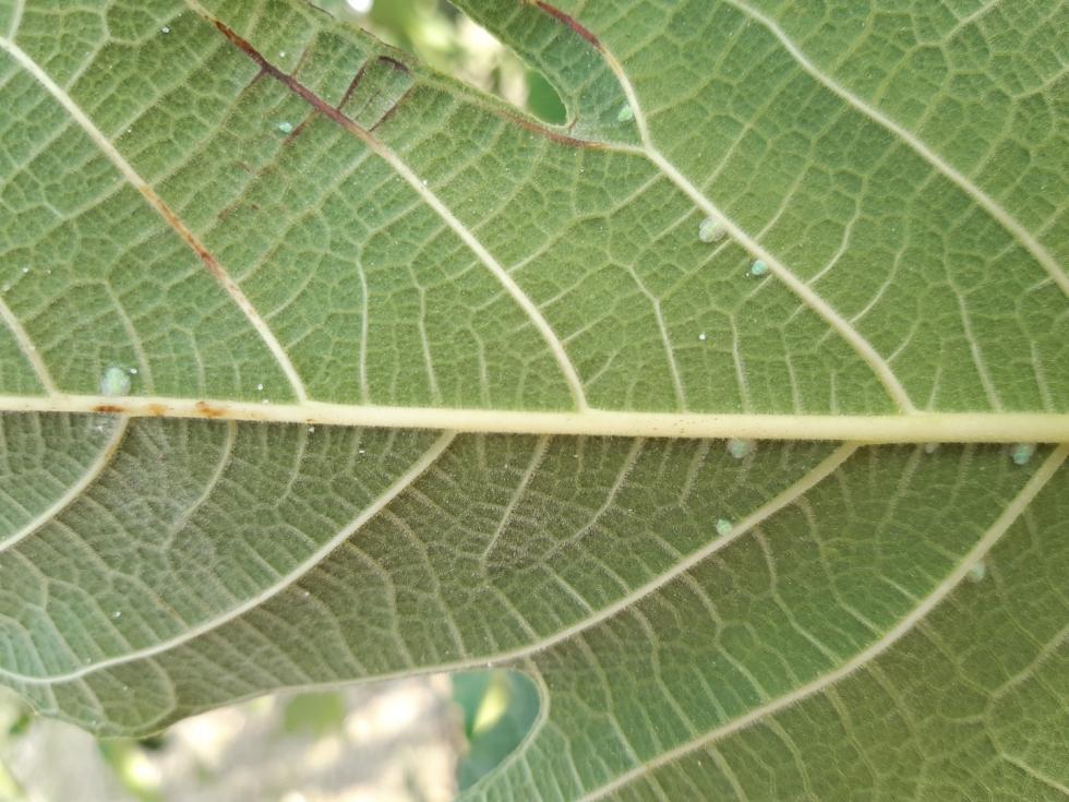 Approfondendo sulla base di ulteriori informazioni mi sono poi convinto che quella sorta di droplets visibili su foglia postata da Bepi, ancorché così ampiamente diffuse, siano dovute all'attività della psilla.