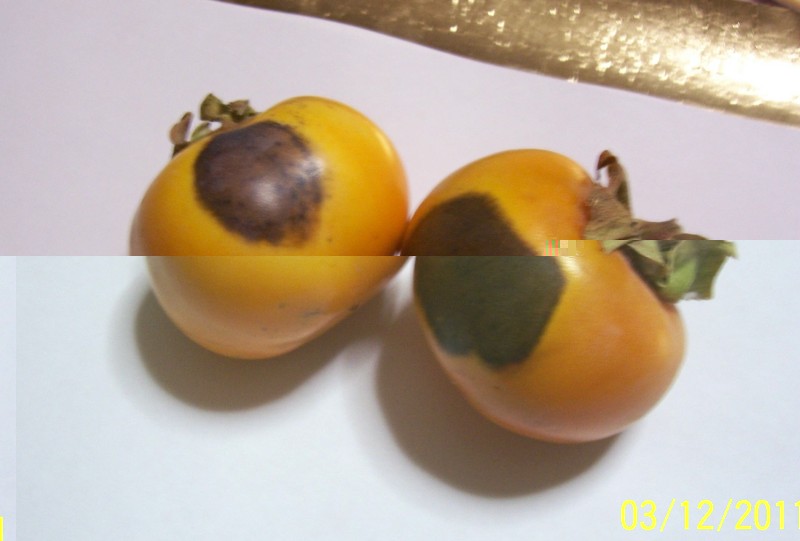 Come l'anno scorso i frutti dei miei caki incominciano a macchiarsi di chiazze blu come l'inchiostro,non sono ancora gialli perciò li lascio ancora sulla pianta,li ho sempre raccolti dopo che ingialliscono,altrimenti quando ammeziscono grattano in gola,ma purtoppo anche quest'anno