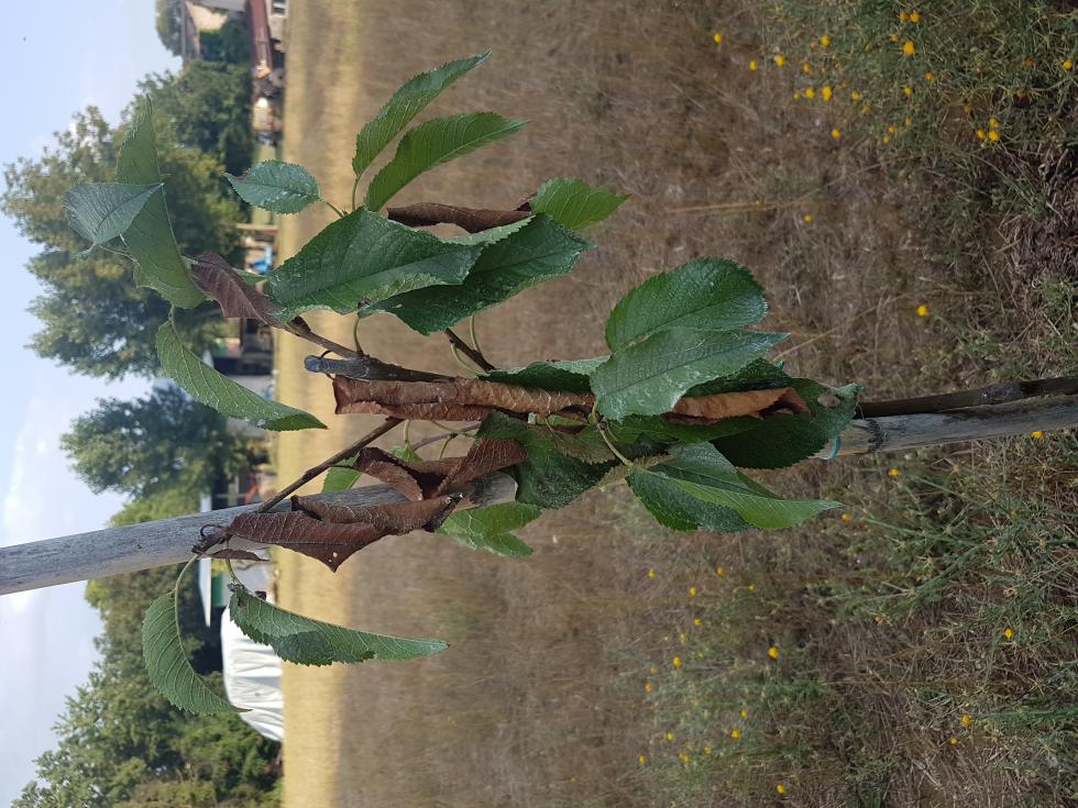 Anche il ciliegio e il secondo melo non hanno un bell'aspetto. Qualche stress c'è stato per tutte, il più colpito sembra quello della prima foto, proprio il soggetto con maggior vigoria, finché... Sicuro che non hanno passato 10/15 giorni senza acqua?