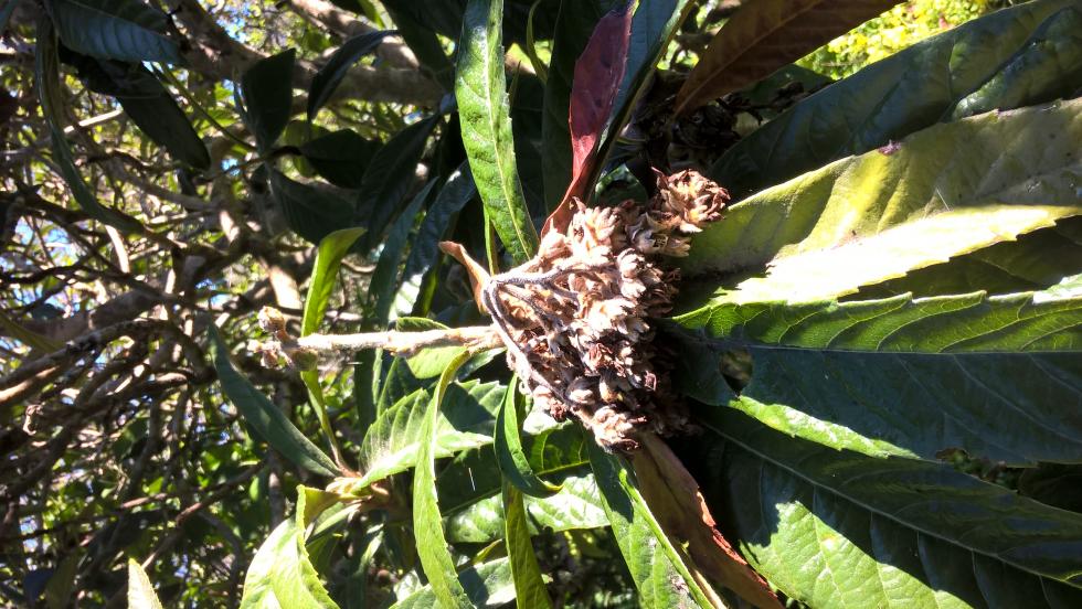 è un nespolo del giappone,(eriobotrya japonica),la lotta al fungo della ticchiolatura si effettua con funghicidi,in modo preventivo e costante.