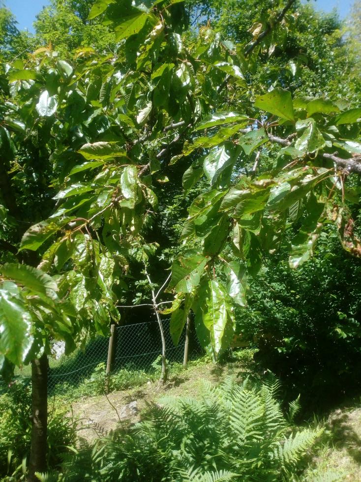 Ritornando a ieri ho visto, ancora, pochissime ciliegie nel ferrovia ma discrete nel Durone. Soltanto che mi sembra (vedi foto) che anche le ciliegie (verdi e grandi come un pisello), siano già inoculate. Le foglie sono tutte bucherellate come sopra detto!!