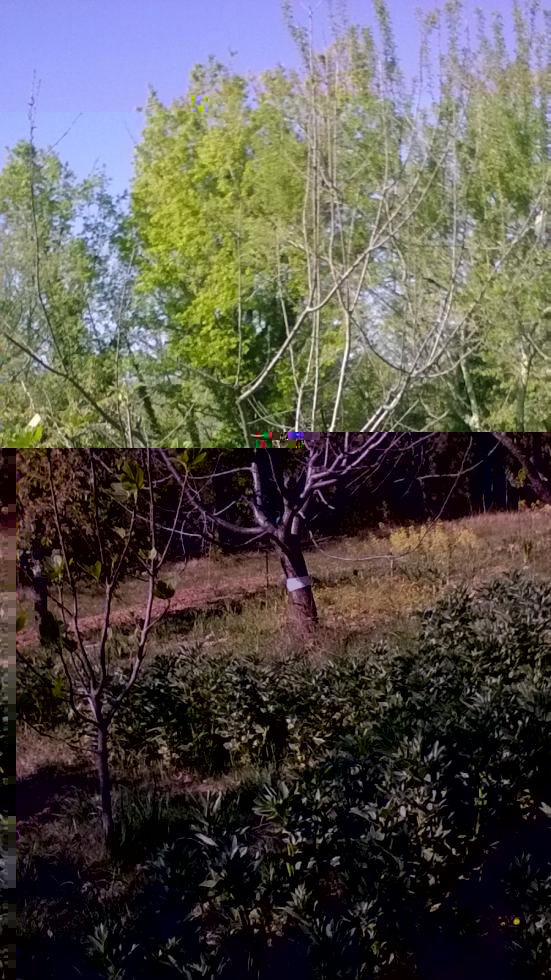 E' un albero che non ho piantato, ma è venuto spontaneamente, forse da un altro ciliegio vicino, che però ha un portamento diverso, meno assurgnte. La fascia bianca che si vede è una fascia collosa contro le formiche