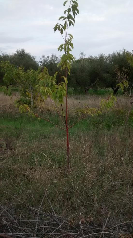 Ciao, da pochi mesi ho iniziato a custodire nel tempo libero un terreno piantumato a olivi e in parte incolto, mi sono dedicato esclusivamente alla cura dell'orto. Ora vorrei iniziare a curare delle piante da frutto che sono state piantate circa 4 anni fa, e purtroppo sono state abbandonate a se stesse, infatti la metà di esse si sono seccate. Quelle sopravvissute, a parte una, hanno le foglie tutte rovinate. Ad esempio questa in foto, che tra l'altro non sono sicuro che frutto sia  Pesco? Allegato: