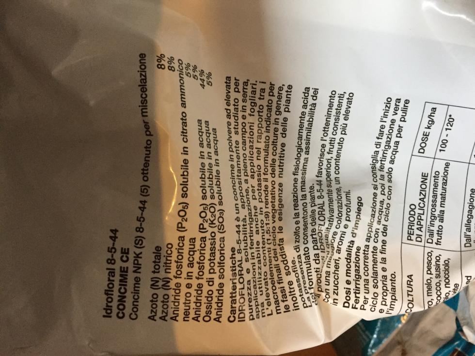 Il primo Idrofloral 8-5-44, meglio utilizzarlo quando i frutti hanno raggiunto loro dimensioni naturali secondo specie.