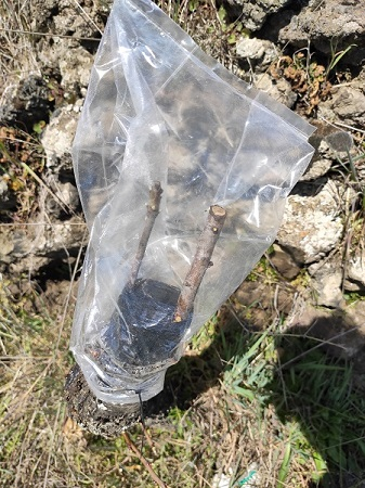 -Prima sacchetto di plastica(per mantenere una certa umidità) e dopo quello di carta(per ombreggiare). -Se non hai marze conservate lascia stare, andresti incontro a fallimento certo. -Non hai detto che età/sezione ha il portainnesto. -Se la sezione del tuo portainnesto te lo consente puoi provare a gemma dormiente in agosto/settembre. P.S. Per innesto a spacco portainnesto e nesto devono essere fermi.(Non strettamente necessaria la copertura). Per innesto a corona portainnesto in vegetazione e nesto fermo. Ciao hyspa