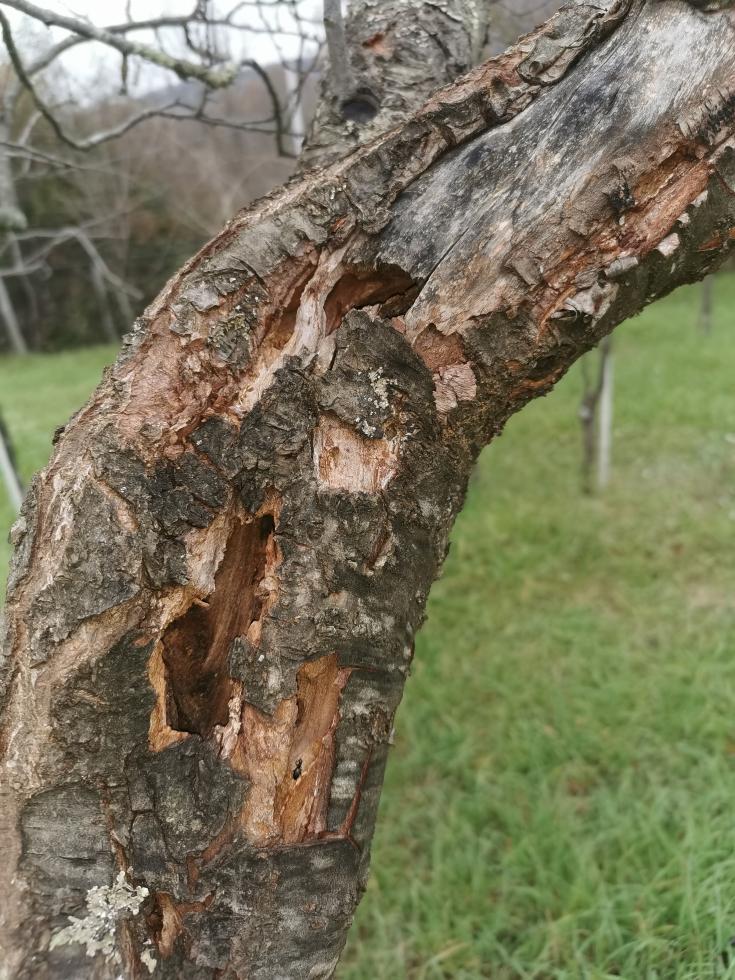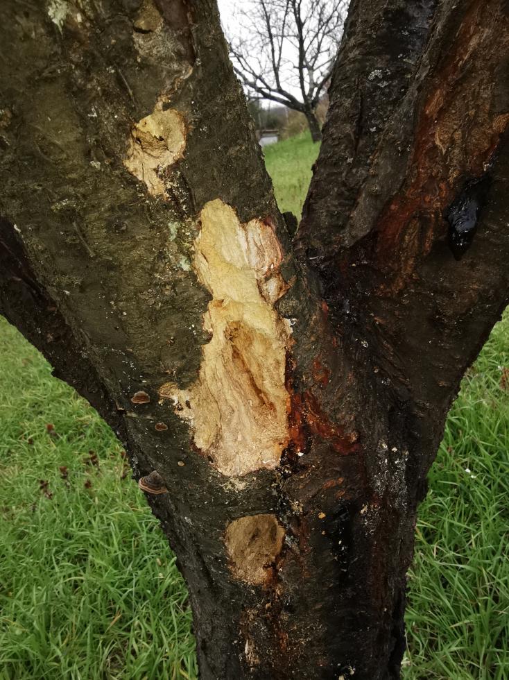 Il legno è bucato ed eroso in alcuni rami. Ho pensato si trattasse di rodilegno ma non li ho trovati. Sicuramente c'è gommosi che ho sempre curato ma non credo che sia quella la causa. Cosa può essere? Sono destinati a morire?