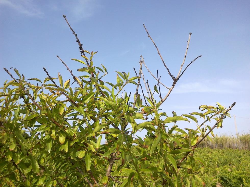 buongiorno. 5 anni fa ho piantato 2 mandorli pronti a fruttificare che crescono molto stentatamente e non danno ancora mandorle: i rametti apicali sono secchi e le foglie sofferenti. La zona è siccitosa e ventosa (Sardegna Sud Ovest), il terreno è sabbioso. Vengono annaffiati con gocciolatore. Ho dato regolarmente concime stallatico cubettato e ternario. Chiedo qualche consiglio agli esperti della lista. Allego foto. Grazie e saluti renzo 1947