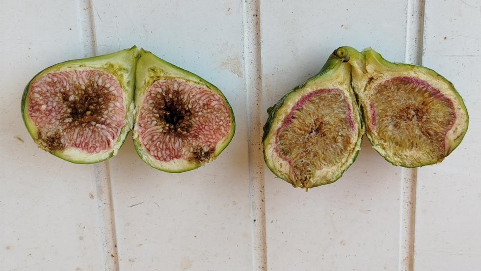 Buongiorno a tutti e bentrovati, volevo condividere un problema che ho con la mia pianta di fichi e confontarmi con qualcuno che possa aver avuto il mio stesso caso per capire se c'è, o meno, una soluzione. E' il secondo anno che i fichi della mia pianta in fase di maturazione diventano immangiabili. L'albero non ha segni di sofferenza e genera molti frutti però all'avvicinarsi della maturazione il fondo del frutto si scurisce e l'interno inizia a marcire. In pochi casi invece l'interno rimane asciutto. Ho avuto lo stesso fenomeno lo scorso anno (frutti marci all'interno) ma ho dato la colpa alle piogge che ci sono state, mentre i fichi stavano maturando ma quest'anno la condizione climatica mi sembra ideale. Mi è stato ipotizzato un possibile problema, non definibile, legato alla pianta che con il tempo si può essere imbastardita o ammalata di qualcosa. Allego le foto che meglio evidenziano quanto ho detto e ringrazio tutti per il possibie aiuto che potrò ricevere.