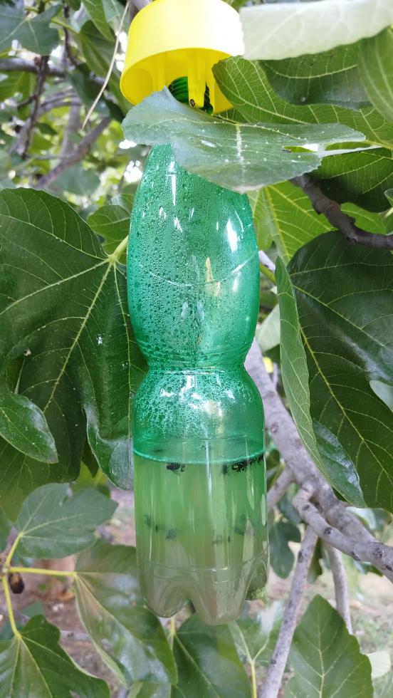 Ciao anche io ho un fico che produce i frutti e non arrivano a maturazione, diventano quasi secchi e semivuoti dentro. Quest'anno osserverò meglio e poi lo taglio. Tra l'altro è in una posizione scomoda. Per quanto riguarda il tuo problema, cui Marco ha dato risposta soddisfacente, aggiungo qualche trattamento da hobbista. Poichè non abbiamo il patentino non possiamo usare insetticidi e tanti prodotti chimici per cui io uso per la mosca della frutta, delle esche di cattura proteiche. In una bottiglia di plastica da acqua minerale lt. 1,5 : 1/2 lt di acqua con dentro 20/30 gr di scarti di pesce (sarde, alici ecc); - oppure 1/2 lt di ammomiaca liquida (non profumata) sempre 20/30gr di scarti di pesce come sopra. Il tappo deve essere giallo per attrarre e avere uno spazio per l'entrata delle mosche. Li vendono tutte le agrarie, vedi un pò tu. Allego una foto come esempio. Al posto degli scarti di pesce vendono un prodotto liofilizzato, prova a chiedere. Se il fico e piccolo una trappola altrimenti due o più. Serve per tutti i tipi di frutta. Saluti Bepi PS è più indicata quella con ammoniaca!