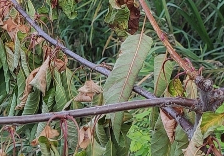 Buongiorno, allego una foto della pianta di ciliegio che ho piantato circa un anno e mezzo fa. Lo scorso mese ho trattato le foglie con del macerato di ortica per via della presenza di afidi, problema risolto. Da qualche giorno però si presenta così.. cosa può essere successo?