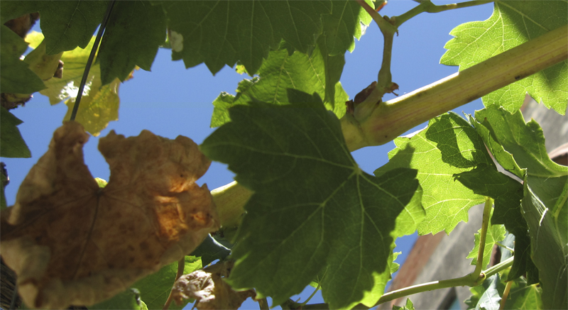 foglie e tralci di vite che ingialliscono