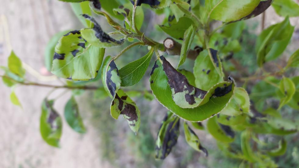 Le foglie di due peri si sono annerite e in alcuni casi seccate. Allego alcune foto. Cosa può essere? Grazie.