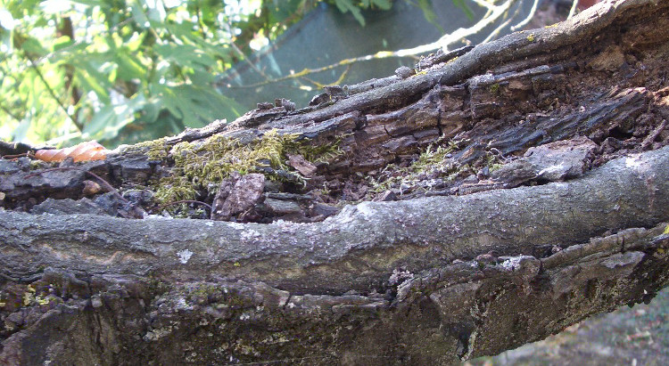 Dei quattro rami, tre sono coperti da una corteccia perfetta, solo uno è solcato come vedete nella prossima figura, ma putroppo è proprio la parte centrale del tronco che mi pare affetta.