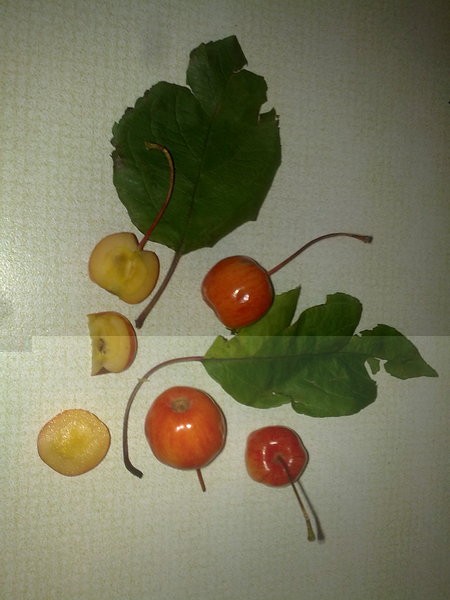 Piccolo albero con frutti per aspetto esterno molto simili alla ciliegia ma quello interno e il sapore da mela. L' albero sembra un melo ma ha la foglia del ciliegio.