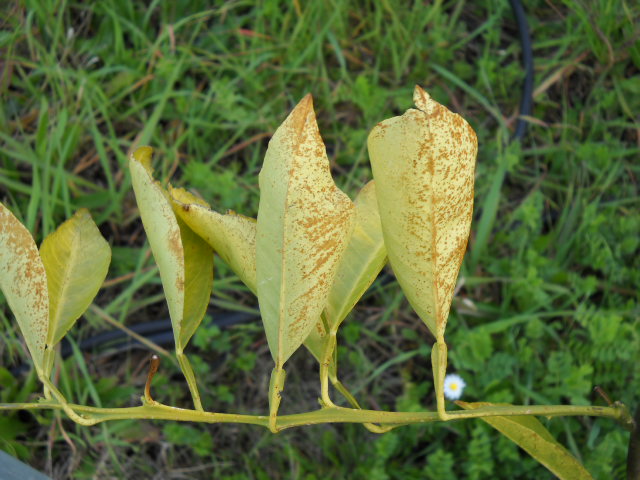 Dalle foto sembra che le piante hanno una forte carenza di sostanze nutritive! Sei sicuro che il terreno è adatto per la arance? La prima foto è effetto del vento che fà strofinare il ramo su qualcosa! Concima le piante e smuovi il terreno Ciao
