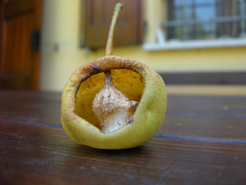 o nella ferita aperta entrano in azione le vespe e le formiche e si pappano tutta la polpa..