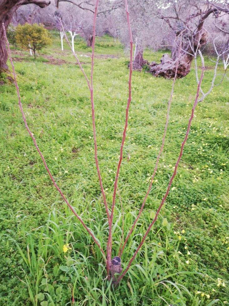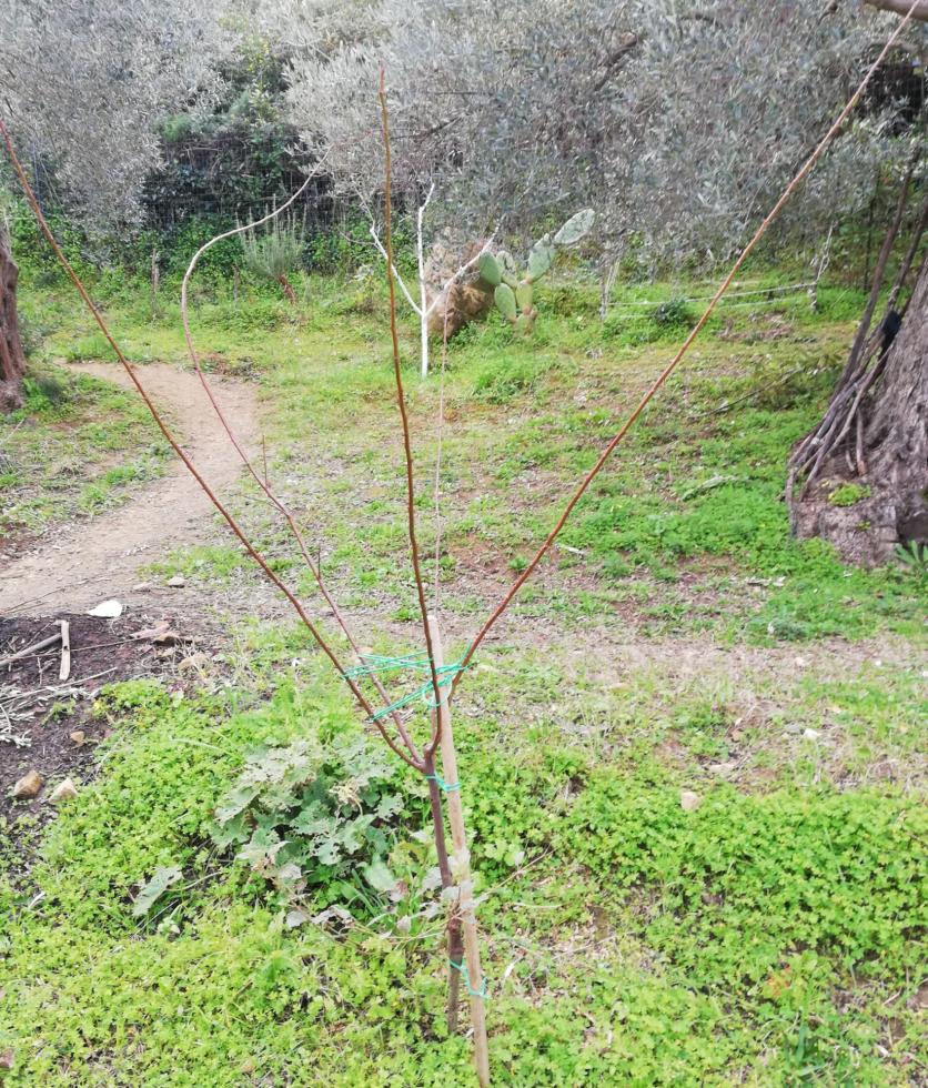 A mio modesto parere il pruno sembra gia' ben impalcato ma io una cimatura dei rami la farei per agevolare appunto la ramificazione. Per quanto riguarda il cachi (ma e' veramente innestato? dalla foto non si capisce l'innesto) mi sembra impalcato troppo basso ed io lascerei solo uno o due tralci cimati a 70/80 cm. per avere un impalcatura l'anno prossimo.