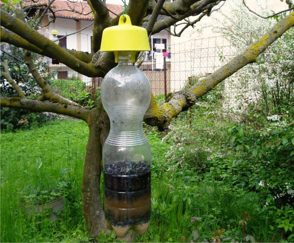 attirerebbe le api , sopra ho posizionato il cappuccio giallo di plastica che ho comprato in un consorzio agricolo. ogni 7-8 giorni ho cambiato le bottiglie e vuotando il contenuto ho contato i calabroni catturati provate e fate sapere saluti