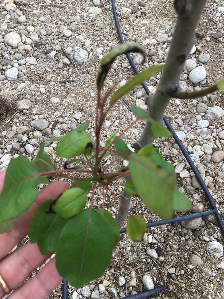 Ti posso dire che su pero una malattia che da alcuni anni sta preoccupando, soprattutto per i danni sulla produzione in quanto i frutti colpiti diventano incommerciabili, è la maculatura bruna. Tale malattia esordisce sulle foglie a partire dalla fioritura in forma di macchioline che possono poi confluire in aree necrotiche. Non mi sembra tuttavia il tuo caso, dal momento che le necrosi sono localizzate lungo i margini - mi pare in particolare delle foglie giovani/apicali - il che mi farebbe pensare piuttosto a una fisiopatia.