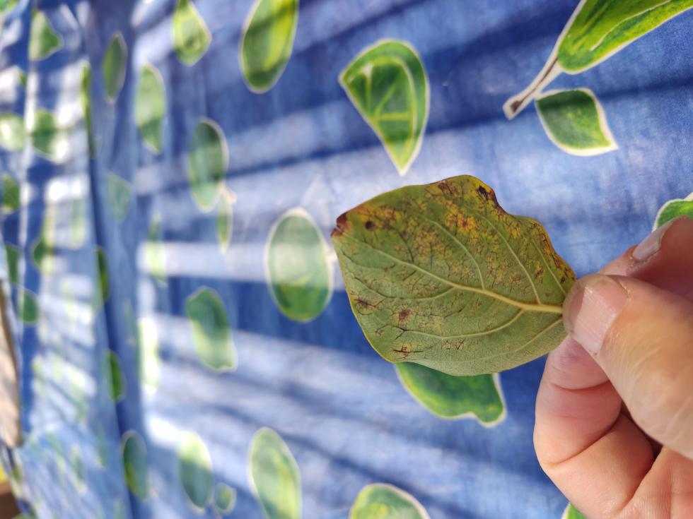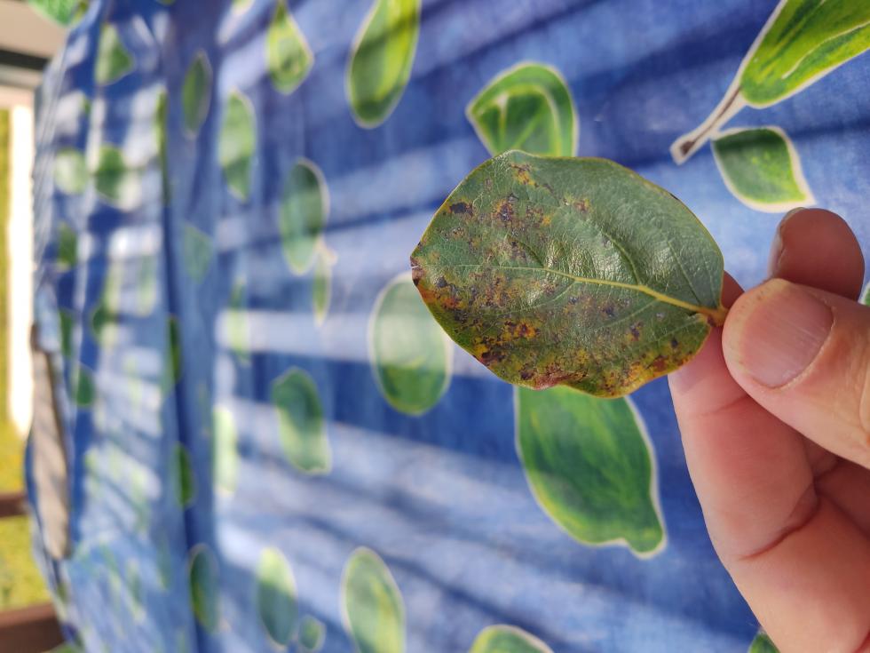 Scrivo in particolare per chiedere se avete idea della mappatura che si vede su questa foglia, ma ogni suggerimento su come aiutare gli alberi è graditissimo!