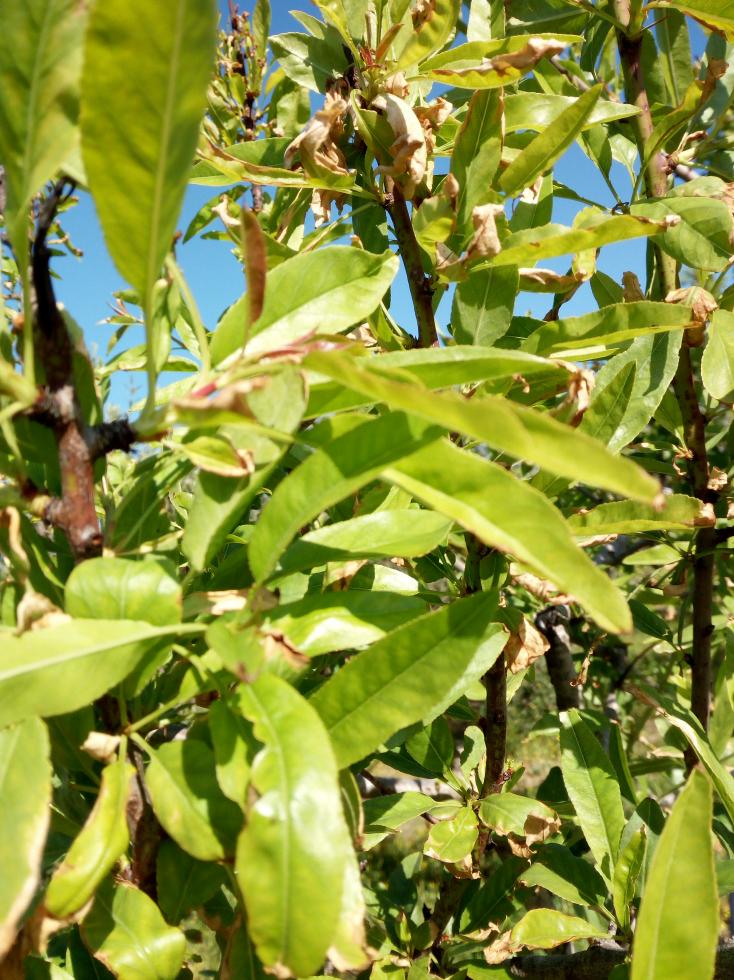 Ho notato che molte foglie del mandorlo si seccano all'estremità sui bordi. Non so se attribuirlo al vento o un attacco di peronospera. Chiedo un parere agli esperti. Grazie. Allego foto