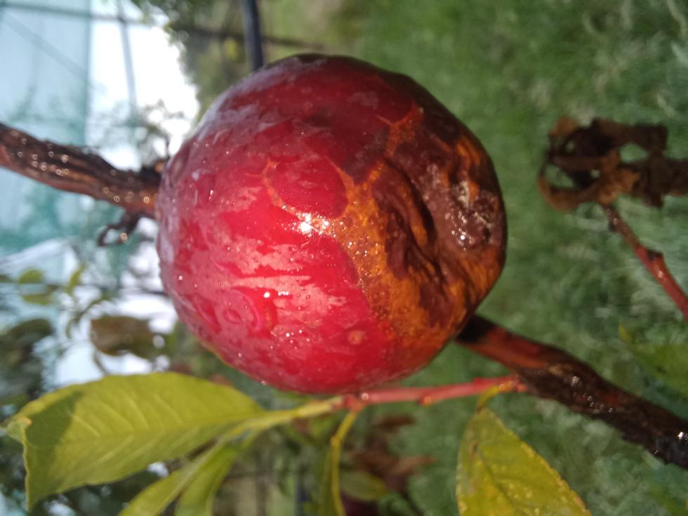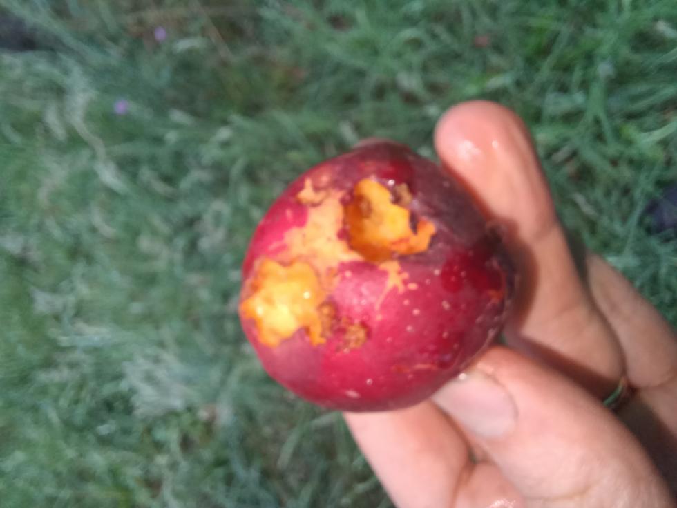 Salve, è da qualche anno che ho un problema di marciume su un pesco. Trovate le foto qua sotto. Di cosa si tratta secondo voi? Mi sembra strano sia moniliosi perchè non c'è muffa (la moniliosi mi colpisce un altro pesco e un susino quando non faccio i trattamenti giusti, mi pare diversa). Una volta che c'è il marciume nella parte inferiore del frutto arrivano gli insetti e completano l'opera.