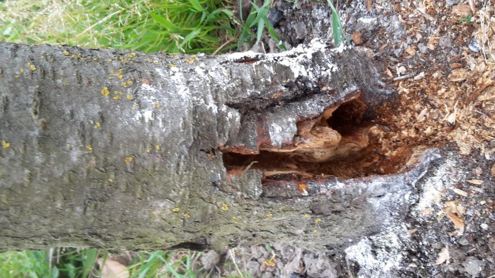 ieri ho notato della segatura a piedi di un susino relativamente giovane e da lì, levando la corteccia, mi sono accorto che l'albero stà marcendo alla base.