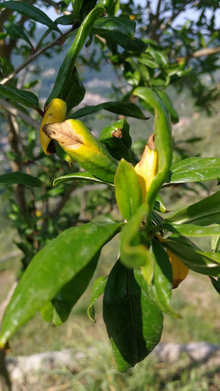 Melograno con foglie che ingialliscono e hanno la punta nera