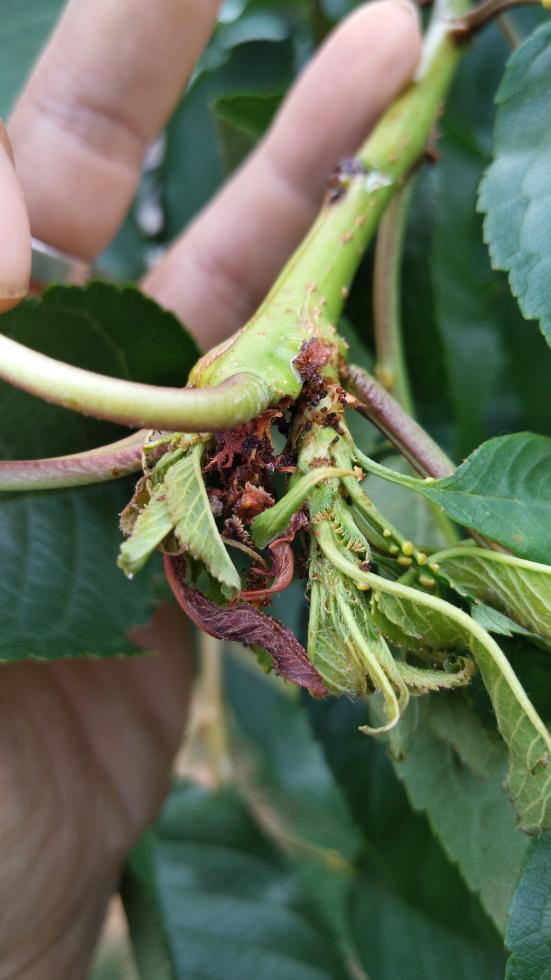 Ho un problema ai germogli apicali del mio ciliegio. Ho notato oggi che sono tutti attaccati credo da un parassita che si nutre della parte interna del germoglio. Le piante di ciliegio hanno tre anni, sono quindi giovani e non molto grandi. Sulla base di ogni germoglio ho notato un foro che credo sia di uscita o di entrata di un insetto. Si notano anche dei piccolissimi pallini marroni raggruppati al di fuori del foro che credo siano gli escrementi del parassita. I germogli hanno perso completamente la loro vitalità e si sono piegati su se stessi, irrecuperabili.
