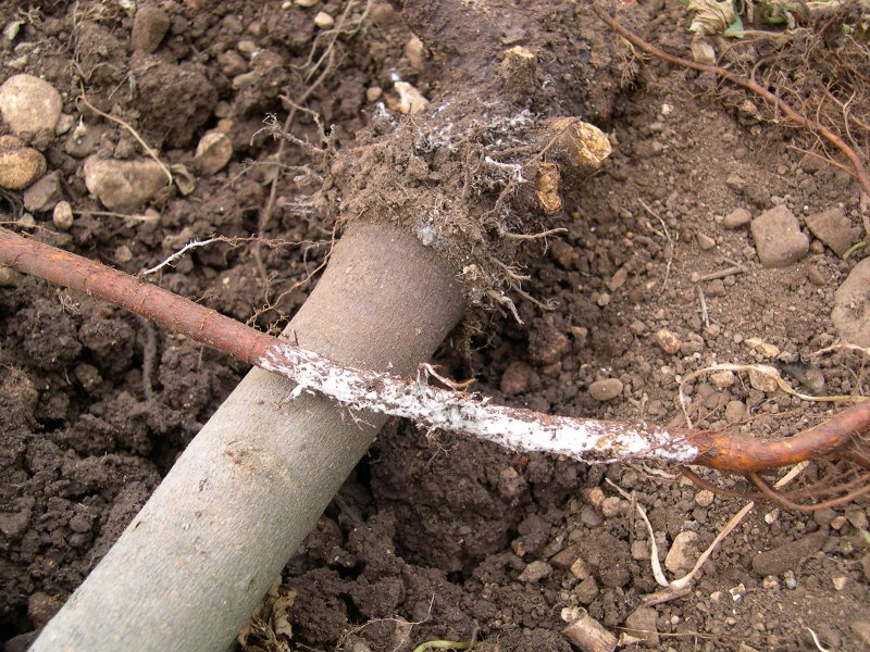 Non ho mai notato funghi nel terreno però penso che sia molto infestato perché avevo già visto dei pezzi di radice con quella patina bianca ma non ci avevo dato peso. Ho visto in rete un prodotto a base di Trichoderma atroviride, che è un fungo antagonista dell'armillaria però non ho capito se sia facilmente reperibile a livello amatoriale e se sia un prodotto che possa dare dei risultati validi. Lorenzo