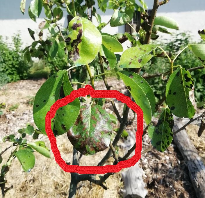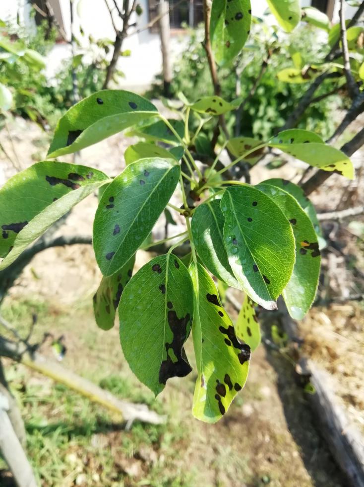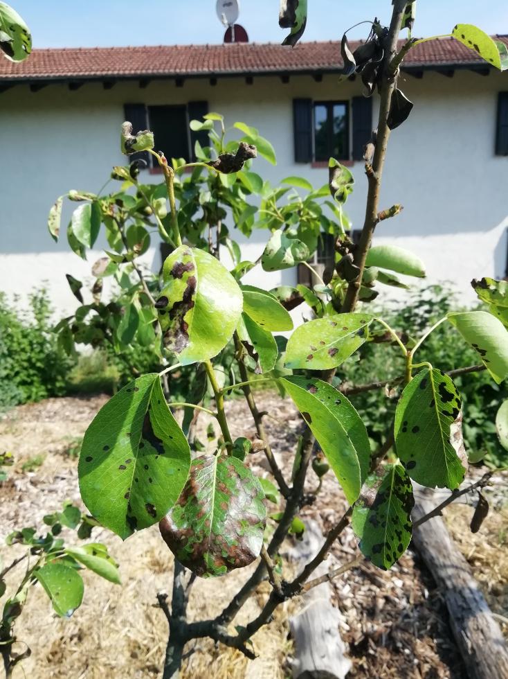 Non credo sia ticchiolatura (almeno i sintomi più appariscenti), direi piuttosto 'maculatura bruna' ( Stemphylium vesicarium). Cfr. > https://gd.eppo.int/taxon/PLEOAL/photos" target="_blank" target="_blank" target="_blank ----------- https://agricoltura.regione.emilia-roma ... ero-scheda" target="_blank" target="_blank" target="_blank