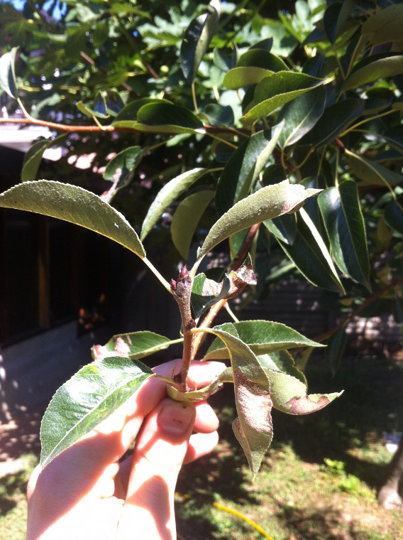 il mio pero ha un piccolo problema....i frutti sono bucati, marci all'interno ma ancora non sono perfettamente maturi! sono dolci ok ma ancora un po' duretti e asprognoli....da quando hanno iniziato a maturare si sono presentate queste macchiette marroni soprattutto nella parte inferione della pera...dato che le parole non bastano ecco qualche foto:
