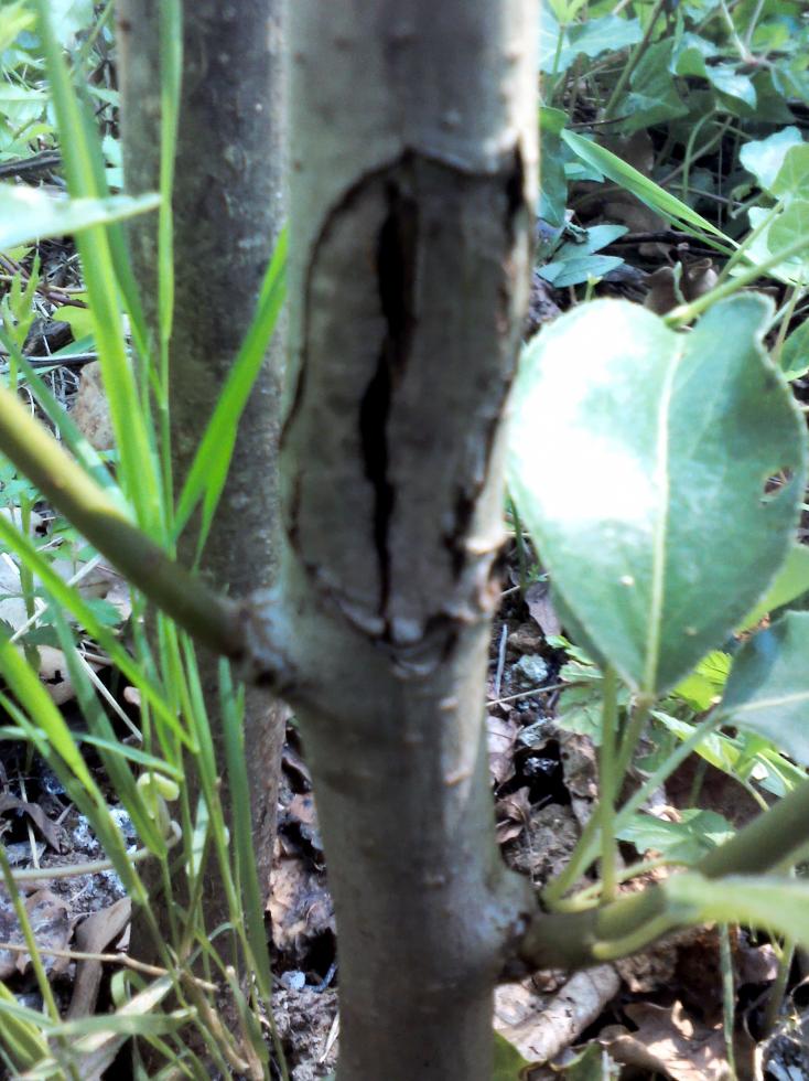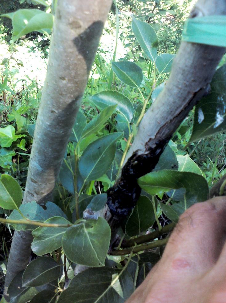 Salve, come potete vedere dalle foto, questo piccolo albero di pero presenta una mallattia nella regione del fusto. Praticamente, nell`area affetta il fusto si presenta secco all`interno, alquanto squamato e dalle lesioni fuoriesce una specie di segatura... come se all`interno si annidasse qualche piccolo insetto che rosicchia il fusto. Conoscete qualche trattamento che potrei effettuare su questa giovane pianta? Aspetto con ansia i vostri consigli, grazie.