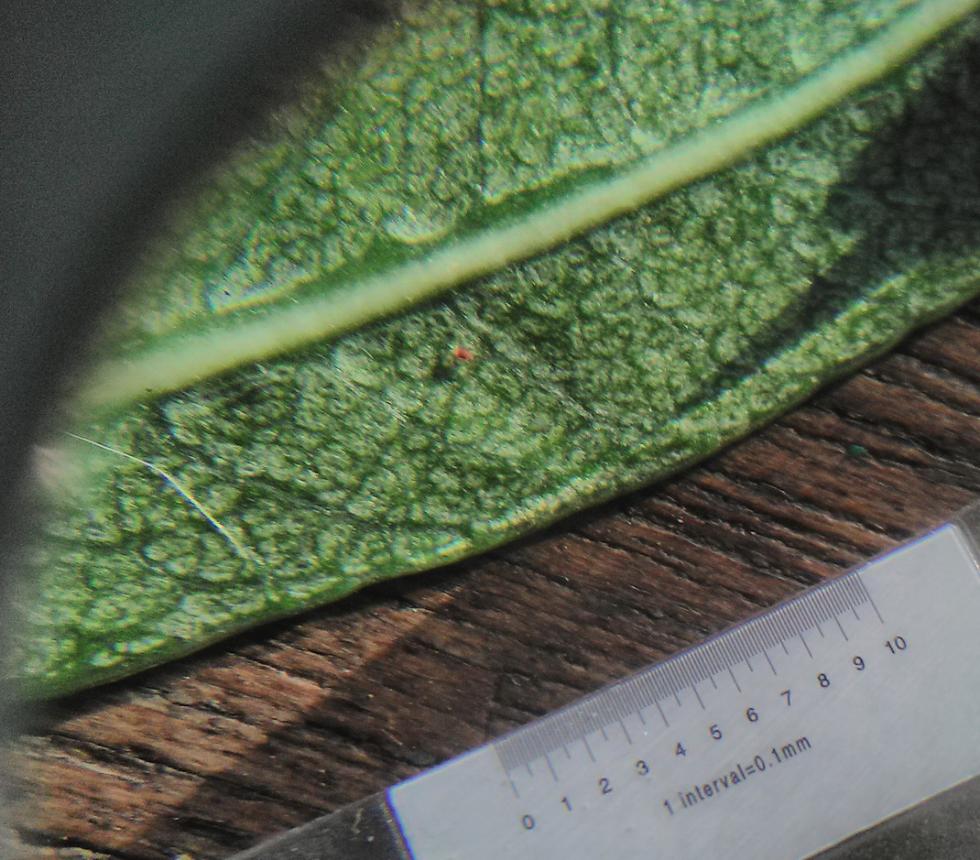 Prima di intervenire è opportuno avere certezza. Poiché ho appena fatto un paio di foto di r.rosso su un mio oleandro ti mostro un semplice metodo per fotografarli: prendi una lente di ingrandimento e appoggiaci sopra l'obbiettivo del cellulare (foto 1); non sempre il r.rosso si presenta con la livrea rossa, spesso il bimaculato è di colore giallino con due macchie più scure (foto 2 allo stereomiscroscopio: adulto rosso, sopra una forma giallina bimaculata, a dx un uovo trasparente).