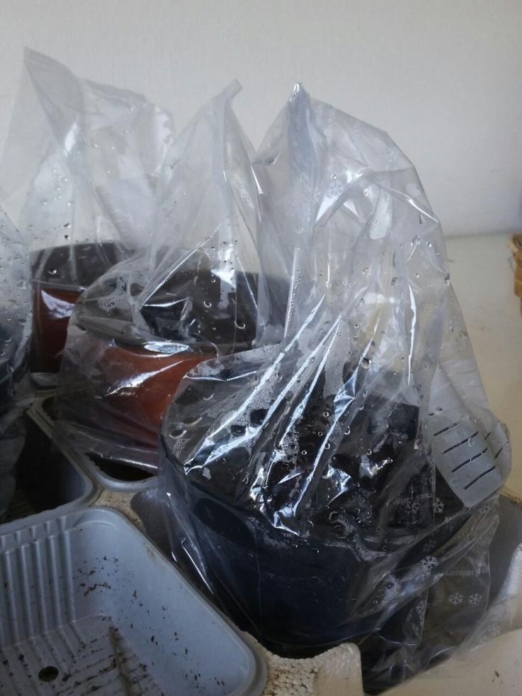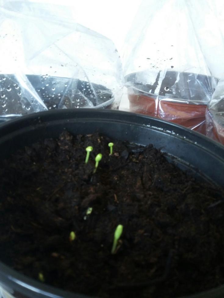 Mentre qui sotto un vasetto con semi sparsi di melograno che iniziano a spuntare (anche questo vaso è coperto con la busta da freezer) Allegato: