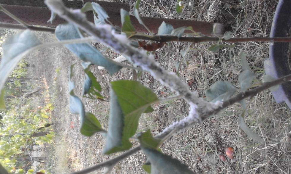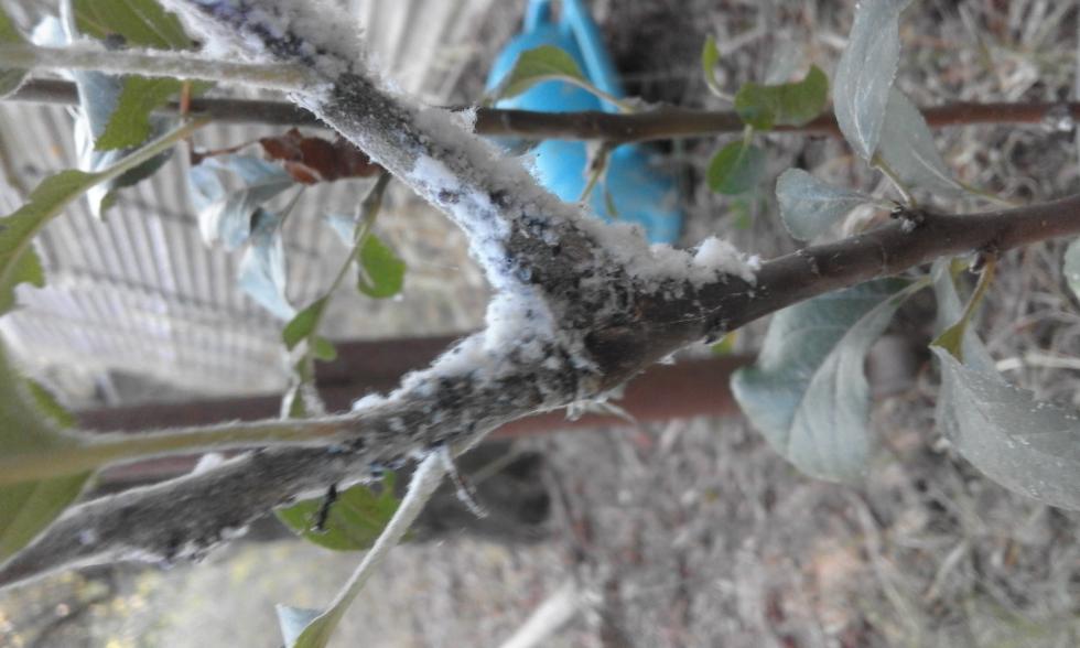 Buonasera a tutti,ecco cosa ho trovato oggi su un piccolo pollone di melo attecchito e messo in vaso . Di cosa si tratta ?avete qualche possibile soluzione'?grazie per la cortese attenzione ciao