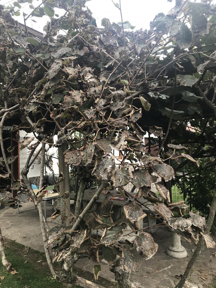 Ogni anno si presenta lo steso problema. Sono 4 piante (1 maschio e 3 femmine) che crescono formando un pergolato sul tavolo esterno. Quest'anno è più accentuato su una delle 3 femmine.