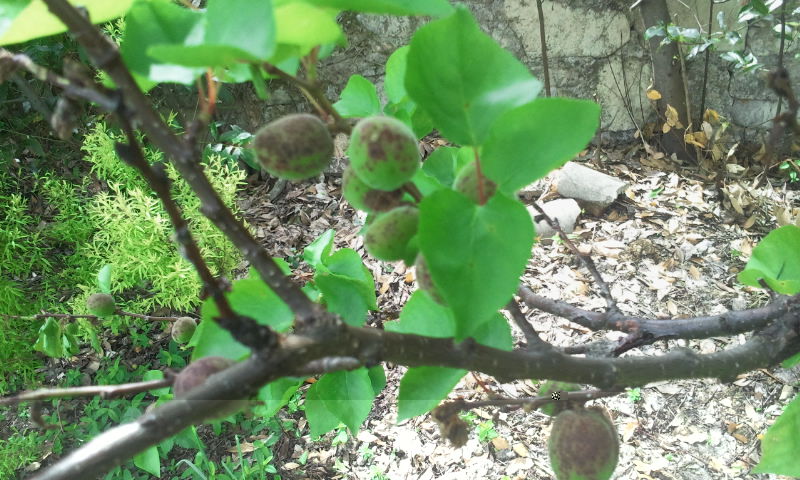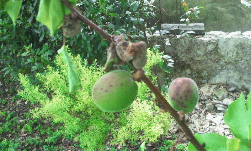 14.16.45.jpg mi sembra di vedere della monilia, foglie con la testa bassa, quasi appassite. se vedi invece delle macchie rosse, anche sulle foglie potresti avere anche del corineo.