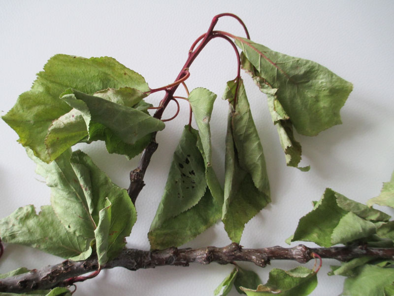 Io invece, oggi, mi sono trovato alcuni rami con le foglie cadute ed accartocciate come nelle foto